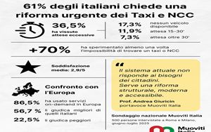 61% dei cittadini chiede una riforma del sistema di taxi e di noleggio auto con conducente (NCC), e quasi sei su dieci insistono sull'urgenza della riforma,